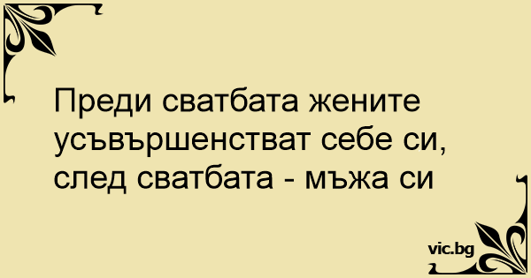 Преди сватбата жените усъвършенстват себе си, след сватбата - мъжа си
