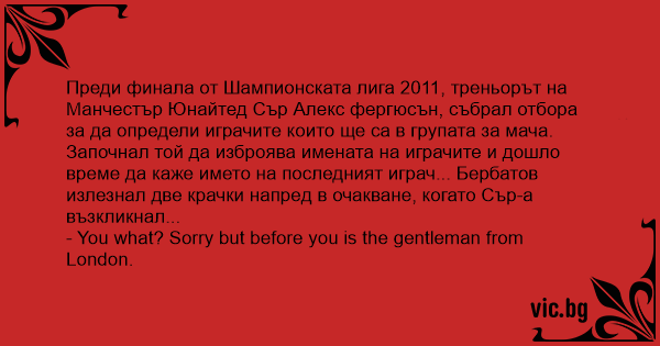 Започнал той да изброява имената на играчите и дошло време да каже името на последният играч... Бербатов излезнал две крачки напрeд в очакване, когато Сър-а възкликнал...
