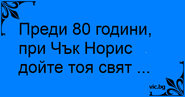 Преди 80 години, при Чък Норис дойте тоя свят ...