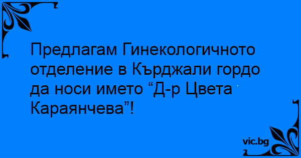 Предлагам Гинекологичното отделение в Кърджали гордо да носи името “Д-р Цвета Караянчева”!