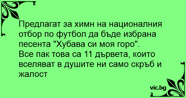 Предлагат за химн на националния отбор по футбол да бъде избрана песента "Хубава си моя горо".