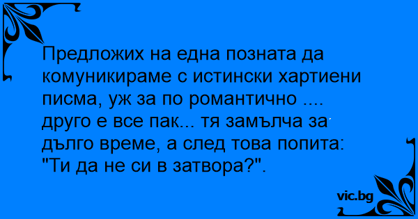 Предложих на една позната да комуникираме с истински хартиени писма, уж за по романтично ....