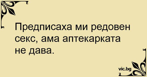 Предписаха ми редовен cekc, ама аптекарката не дава.