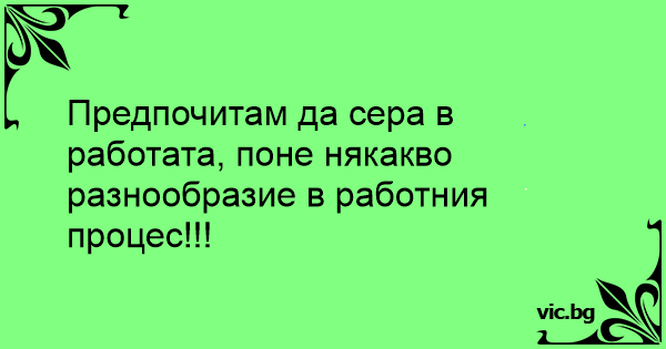 Предпочитам да сера в работата, поне някакво разнообразие в работния процес!!!