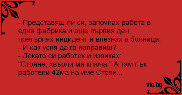 • Вицове от Facebook от нашата страница https://www.facebook.com/www.vic.bg