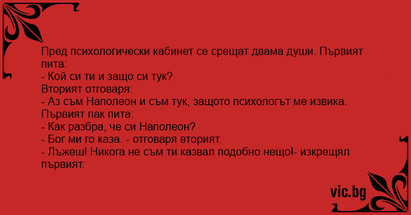 - Аз съм Наполеон и съм тук, защото психологът ме извика.