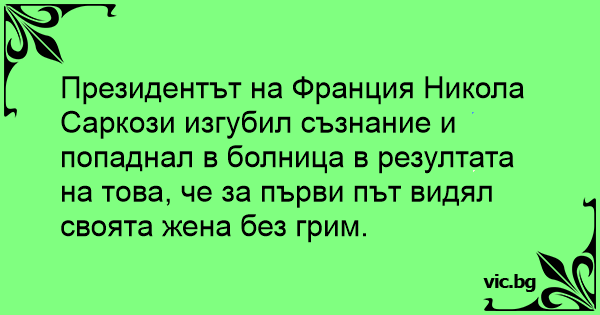 Президентът на Франция Никола Саркози изгубил съзнание и попаднал в болница в резултата на това, че за първи път видял своята жена без грим.