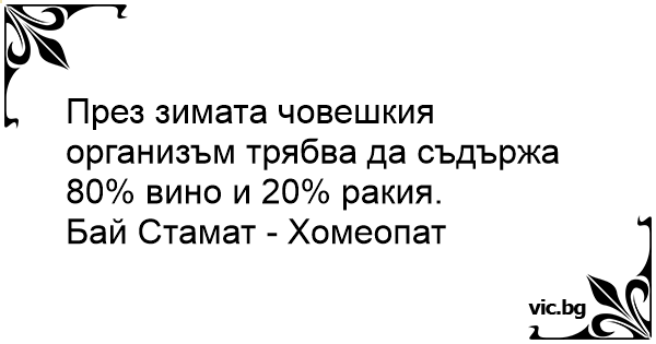 През зимата човешкия организъм трябва да съдържа 80% вино и 20% ракия.
