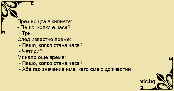 - Пешо, колко е часа?