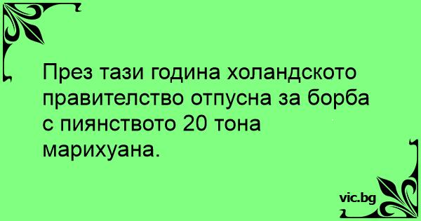 През тази година холандското правителство отпусна за борба с пиянството 20 тона марихуана.