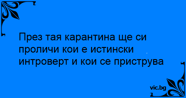 През тая карантина ще си проличи кои е истински интроверт и кои се приструва