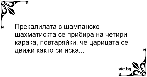 Прекалилата с шампанско шахматискта се прибира на четири карака, повтаряйки, че царицата се движи както си иска...