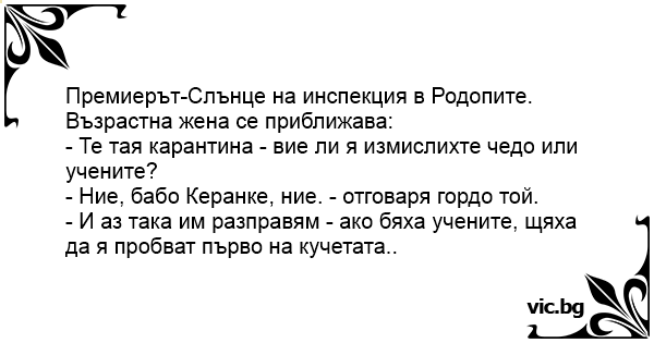 • Вицове от Facebook от нашата страница https://www.facebook.com/www.vic.bg
