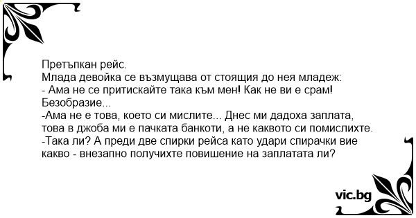 -Ама не е това, което си мислите... Днес ми дадоха заплата, това в джоба ми е пачката банкоти, а не каквото си помислихте.