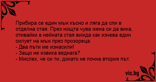 Мъж се върнал у дома късно през нощта и легнал да спи в отделна стая.