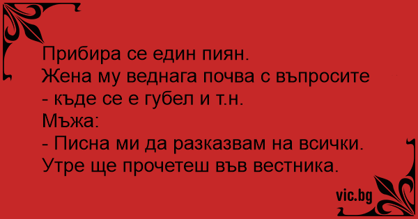 - Писна ми да разказвам на всички. Утре ще прочетеш във вестника.