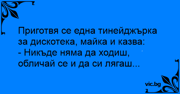 Приготвя се една тинейджърка за дискотека, майка и казва: