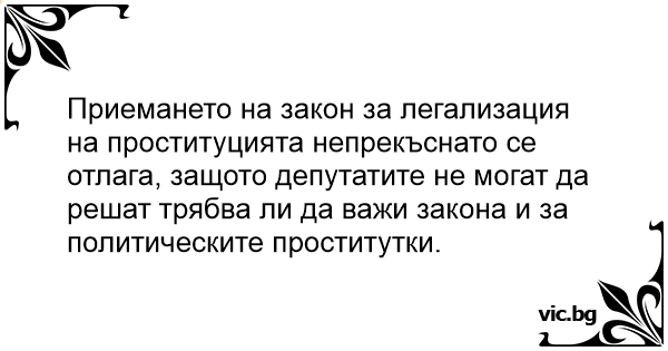 Приемането на закон за легализация на проституцията непрекъснато се отлага, защото депутатите не могат да решат трябва ли да важи закона и за политическите пpoctиtуtkи.