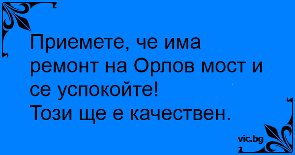 Приемете, че има ремонт на Орлов мост и се успокойте!