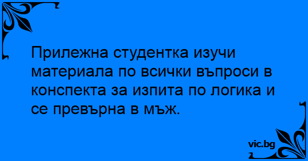 Прилежна студентка изучи материала по всички въпроси в конспекта за изпита по логика и се превърна в мъж.