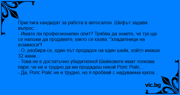 • Вицове от Facebook от нашата страница https://www.facebook.com/www.vic.bg