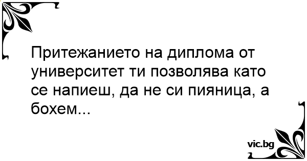 Притежанието на диплома от университет ти позволява като се напиеш, да не си пияница, а бохем...