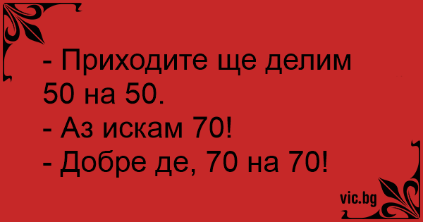 - Приходите ще делим 50 на 50.