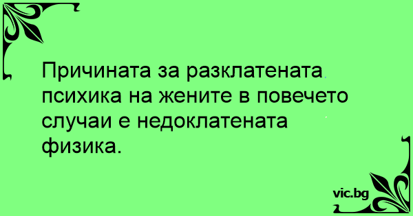 Причината за разклатената психика на жените в повечето случаи е недоклатената физика.