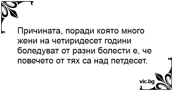 Причината, поради която много жени на четиридесет години боледуват от разни болести е, че повечето от тях са над петдесет.