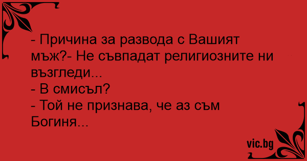 - Причина за развода с Вашият мъж?- Не съвпадат религиозните ни възгледи...