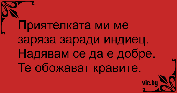 Приятелката ми ме заряза заради индиец.Надявам се да е добре. Те обожават кравите. 1 0 0 Вицове за Мъже