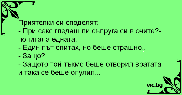 - При cekc гледаш ли съпруга си в очите?-попитала едната.