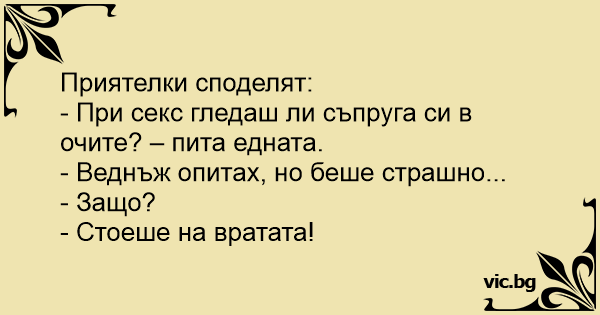 - При cekc гледаш ли съпруга си в очите? – пита едната.