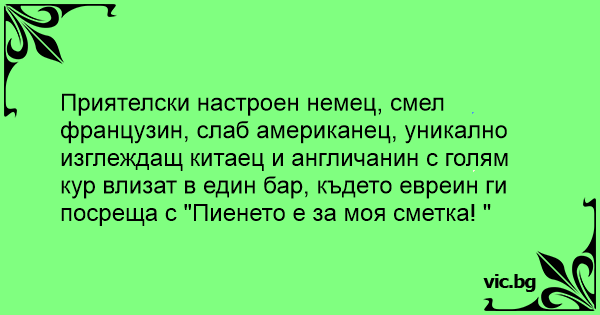 • Вицове от Facebook от нашата страница https://www.facebook.com/www.vic.bg