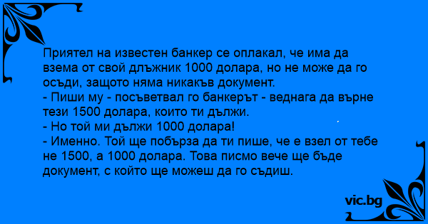 - Пиши му - посъветвал го банкерът - веднага да върне тези 1500 долара, които ти дължи.
