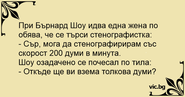 При Бърнард Шоу идва една жена по обява, че се търси стенографистка: