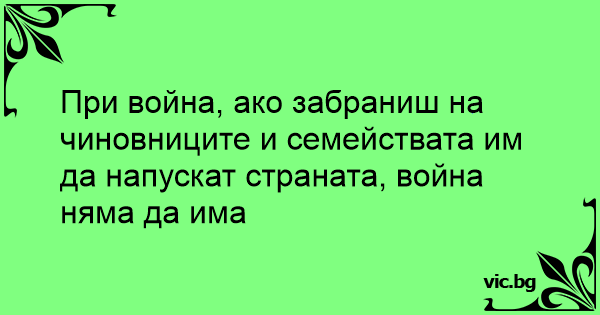 При война, ако забраниш на чиновниците и семействата им да напускат страната, война няма да има