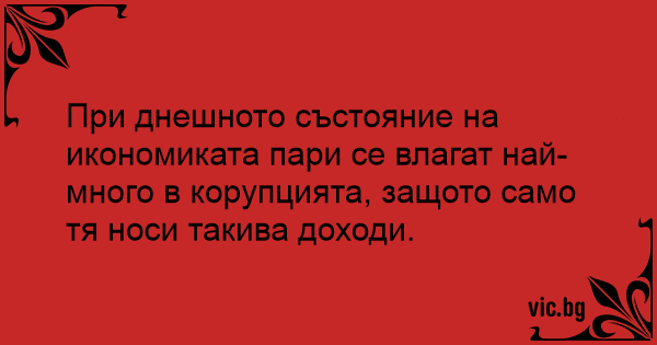 При днешното състояние на икономиката пари се влагат най-много в корупцията, защото само тя носи такива доходи.