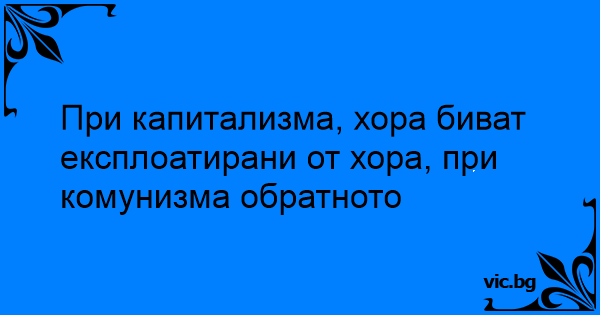 При капитализма, хора биват експлоатирани от хора, при комунизма обратното