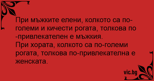 При мъжките елени, колкото са по-големи и кичести рогата, толкова по-привлекателен е мъжкия.