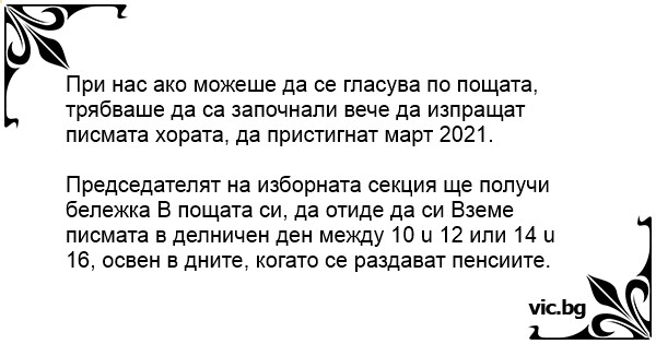 Председателят на изборната секция ще получи бележка В пощата си, да отиде да си Вземе писмата в делничен ден между 10 u 12 или 14 u 16, освен в дните, когато се раздават пенсиите.