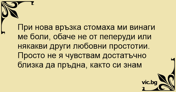При нова връзка стомаха ми винаги ме боли, обаче не от пеперуди или някакви други любовни простотии.