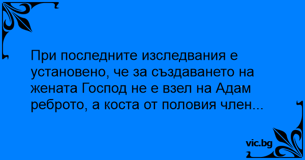 При последните изследвания е установено, че за създаването на жената Господ не е взел на Адам реброто, а коста от половия члeн...
