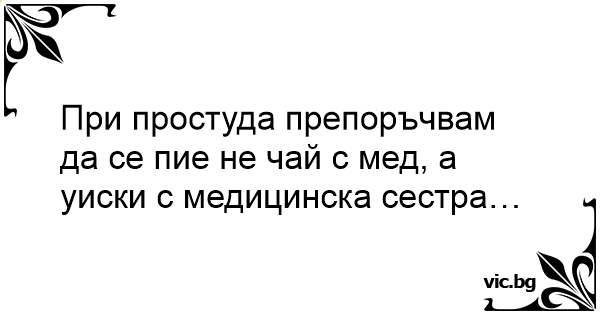При простуда препоръчвам да се пие не чай с мед, а уиски с медицинска сестра…