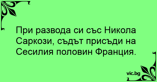 При развода си със Никола Саркози, съдът присъди на Сесилия половин Франция.