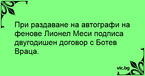 При раздаване на автографи на фенове Лионел Меси подписа двугодишен договор с Ботев Враца.