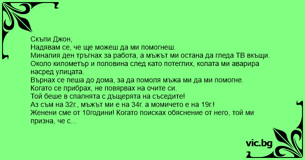Миналия ден тръгнах за работа, а мъжът ми остана да гледа ТВ вкъщи.
