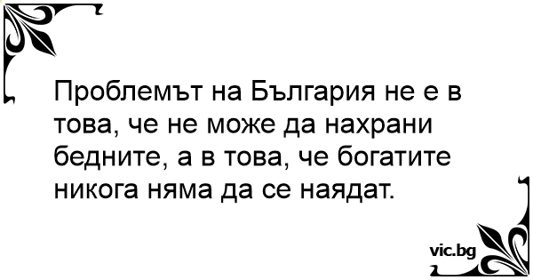 Проблемът на България не е в това, че не може да нахрани бедните, а в това, че богатите никога няма да се наядат.