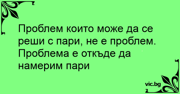 Проблем които може да се реши с пари, не е проблем.