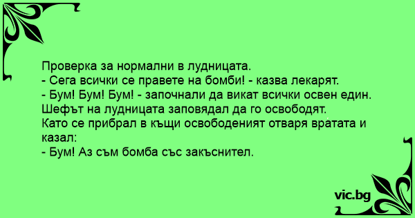 • Вицове от Facebook от нашата страница https://www.facebook.com/www.vic.bg